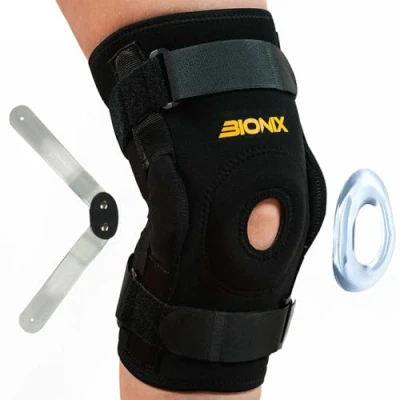 Bionix Hinged Knee Brace with Bilateral Stability Open Patella Buttress for Tendonitis Arthritis Injuries and Sprains Pain Support Men Women Left, Right Leg S