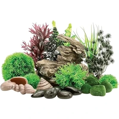 Curated Aquarium Decor Set: Create an instant oceanscape with this set - includes a stackable rock sculpture, easy plant set, dark green sea pearls & kelp set, black bonsai ball, flower ball, topiary ball set, seashells, moss & black marble pebbles. Bubble Tube-Friendly Sculpture: Durable, stackable rock sculpture centrepiece easily slides over a biOrb bubble tube for a stable and safe decoration — no assembly needed. Fish‑Safe & Easy to Clean: The materials used to create our decor are non-toxic, easy to clean, and durable. Simply remove, rinse and return the components to your aquarium to maintain their pristine appearance. Simple Installation: These elements come together to create a beautifully lush rock valley scape within any biOrb TUBE 35, HALO 60, FLOW 30, CLASSIC 60-105, LIFE 30-60, or CUBE 60 aquarium. Compatibility Is Key: All biOrb decorations are compatible with freshwater or saltwater aquarium setups. So, you can create your dream underwater oasis regardless of the type of aquatic environment you prefer. Enhance Fish Tranquillity: Adds natural colours, shapes, and visual interest - promoting engaging, calm surroundings for both you and your aquatic friends. A soothing centrepiece that brings your aquascape to life. Quality Trusted Around the World: Part of the OASE Group, biOrb blends expert engineering with elegant design. Known for innovation & reliability, biOrb products are trusted by aquarists around the world to support healthy, beautiful aquatic setups.