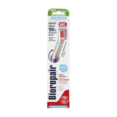 guarantees a totally contact between bristles, teeth and gums also into oral cavity - Biorepair by Coswell, Italian innovations since 1961 toothbrush with smart curvature its innovative forward leaning, the surface of Biorepair toothbrush bristles positioning in parallel with gumedge