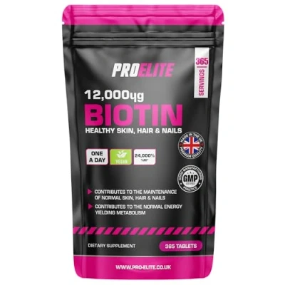 💇♀️ 𝐒𝐮𝐩𝐩𝐨𝐫𝐭𝐬 𝐇𝐚𝐢𝐫 𝐆𝐫𝐨𝐰𝐭𝐡 & 𝐒𝐭𝐫𝐞𝐧𝐠𝐭𝐡 – High-strength 12,000mcg Biotin (Vitamin B7) promotes thicker, stronger, and healthier hair for both women and men. 💅 𝐇𝐞𝐚𝐥𝐭𝐡𝐲 𝐒𝐤𝐢𝐧 & 𝐍𝐚𝐢𝐥𝐬 – Contributes to maintaining glowing skin and stronger nails, reducing brittleness and breakage. ⚡ 𝐇𝐢𝐠𝐡 𝐀𝐛𝐬𝐨𝐫𝐩𝐭𝐢𝐨𝐧 𝐅𝐨𝐫𝐦𝐮𝐥𝐚 – Made with premium D-Biotin for maximum absorption and effectiveness. 🌱 𝐕𝐞𝐠𝐚𝐧 & 𝐂𝐥𝐞𝐚𝐧 𝐅𝐨𝐫𝐦𝐮𝐥𝐚 – 100% vegan, non-GMO, gluten-free, and free from artificial colours or preservatives. 🇬🇧 𝐐𝐮𝐚𝐥𝐢𝐭𝐲 𝐘𝐨𝐮 𝐂𝐚𝐧 𝐓𝐫𝐮𝐬𝐭 – Proudly made in the UK to the highest standards, ensuring purity and consistent results.