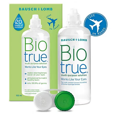 Biotrue Multi Purpose Travel Contact Lens Solution, 100 ml Flight Pack, Cushions and Rehydrates Soft Lenses Comfortable Wear Condition, Clean, Remove Protein, Disinfect Rinse