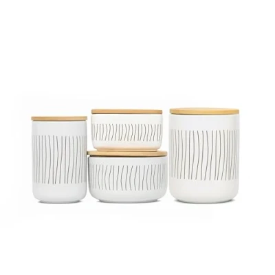 ELEGANT DESIGN: Set of 4 white ceramic storage boxes with vertical lines pattern and matching bamboo lids PREMIUM MATERIALS: Boxes made of sturdy and durable ceramic, with airtight lids for better preservation Versatile: Perfect for storing dry food, spices, tea, coffee or as decorative containers in the kitchen, or as decoration for your bathroom and bedroom. Practical closure: fitted lids ensure an optimal closure to preserve the freshness of the food Various sizes: set of four boxes of different sizes to adapt to all your storage needs, Weight: 2.645547144 pounds, Manufacturer: Birambeau