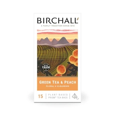 Birchall Green Tea & Peach 15 Plant Based Prism Bags 37.5g