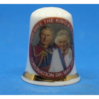 Birchcroft Porcelain China Collectible Thimble King Charles & Queen Consort Camilla Coronation