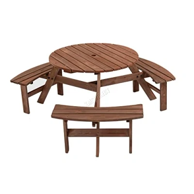Amazon【HIGH-QUALITY MATERIAL】This BIRCHTREE picnic table is made of high quality fir wood from superb workmanship to ensure the sturdy and durable of the table bench set. 【WEATHER-RESISTANT】Covered with brown paint to resistant water and scratch. You can DIY the color if you want. 【TABLE BENCH SET】This table is designed with 3 build-in benches, it is suitable for 2-6 people to sit. Each bench can hold up to 227KG. Overall dimensions: 170*170*70cm; Table Diameter: 90cm; Bench Size: 80x24cm. 【WIDE APPLICATION】This Round table is designed with a 5cm diameter umbrella hole. It is perfect for you to set up a parasol for shade (umbrella not included); Ideal for restaurant, BBQ, beach, deck, park, patio, etc. Perfect for you have a picnic and enjoy the outdoor leisure time with your friends and family. 【FLAT PACKED】This BIRCHTREE picnic bench is easy to set up and use. If you have any questions, please feel free to contact us.