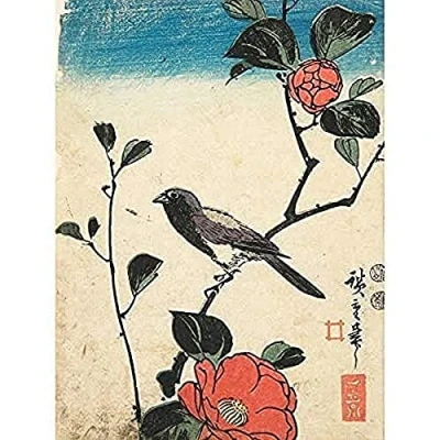 Bird Camellia Branch 1850 Utagawa Hiroshige Art Print Canvas Premium Wall Decor Poster Mural