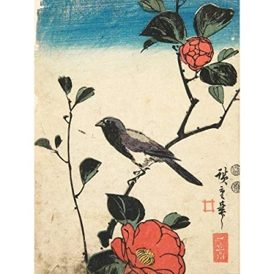 Bird Camellia Branch 1850 Utagawa Hiroshige Large Wall Art Print Canvas Premium Mural