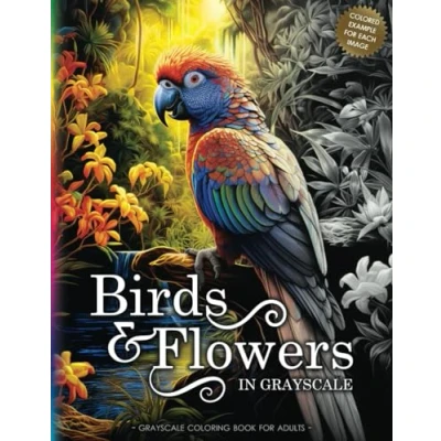 BIRDS & FLOWERS: A Grayscale Coloring Book for Adults Teens