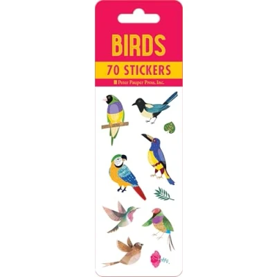 This sticker sheet set is for the birds -- and bird lovers! From backyard feathered friends to exotic birds from faraway places, dozens of bird images are combined with botanical accents. Fun and decorative designs add pops of color and personality wherever they stick! Set contains 70 stickers in all! Premium stickers have a high-quality finish. Stickers peel off backing sheets easily. Adhesive adheres securely to paper and other surfaces. Set comes with 6 sheets of stickers. Each sheet measures 2-1/2'' x 7-1/8''. Sticker set comes in a protective polybag.