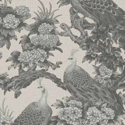 Birds wallpaper wall Profhome 399823 hot embossed non woven slightly textured with floral pattern matt grey silk umbra 5,33 m2