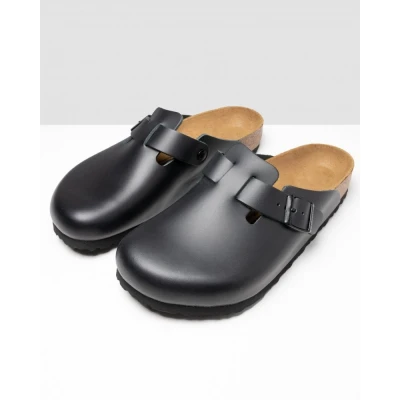 The BIRKENSTOCK Boston is a veritable classic that can easily be worn all year round. The Boston has a legendary status thanks to its sophisticated, individual design. The upper is made from high-quality, soft natural leather. Anatomically shaped cork-latex footbedUpper: natural leatherFootbed lining: suedeSole: EVADetails: one strap with an individually adjustable metal pin buckle