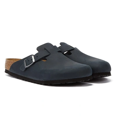 In summary, the Birkenstock Boston Oiled Leather Slip-On Shoes are a noteworthy addition to any shoe collection. With their rich history, quality materials, and exceptional comfort features, they represent an investment in footwear that prioritises both style and functionality. The all-black design, enhanced with adjustable elements and a reliable sole, ensures that these mules can be worn in various settings, making them a versatile choice for any modern man. Experience the ultimate in comfort and durability with these iconic Birkenstock shoes, and step out with confidence on any occasion.