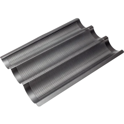 The Birkmann Baguette mold Laib & Seele 3 Baguettes is the ideal bake form to make your own delicious, artisanal Baguettes prepare. Thanks to its clever design, you bake three perfectly shaped loaves at once, with a crispy crust and airy interior. This Baguette mold is made of high-quality steel with a durable non-stick coating, distributing heat evenly for perfect baking results. The perforated bottom ensures optimal air circulation, contributing to a deliciously crispy crust. The Birkmann Baguette mold Laib & Seele is easy to clean by hand and offers long-lasting convenience. Perfect for both novice and experienced home bakers who enjoy serving homemade baguettes with every meal!
