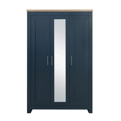 Birlea 3 Door Mirror Wardrobe Navy Oak Highgate Farmhouse Shabby Chic