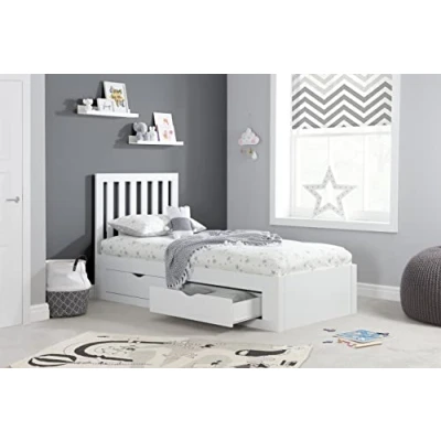 Featuring 4 large drawers this bed is the ideal storage solution. The maximum mattress height to be used is 190 mm. The maximum load baring is 100kg. Please note: Birlea beds are only suitable for a UK standard size mattress. Flat packed and easy to assemble