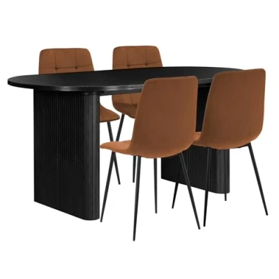 Birlea Axel Oval Fluted Dining Table Black With 4 Fabric Chairs Russet