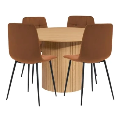 Birlea Axel Round Fluted Dining Table Oak With 4 Fabirc Chairs Russet