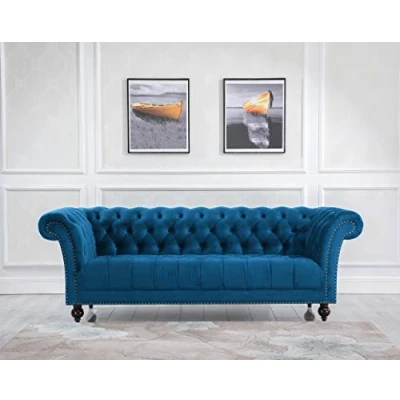Traditionally inspired the Chester sofa features beautiful button detailing in an elegant shape with gentle curves and thick, bouncy cushions this Chester sofa will complete your room in style. The Chester is also available as a 2 seater sofa Please note that the legs and fixing kits are concealed in the base of the sofa prior to assembly The maximum weight load for this sofa is 270 kg Flat packed and easy to assemble Velvet finish