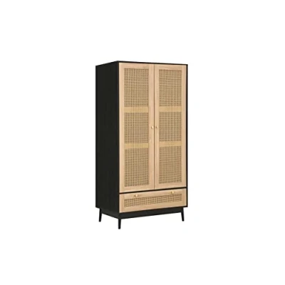 Birlea Croxley Rattan Wardrobe Black Oak, 2 Door 1 Drawer