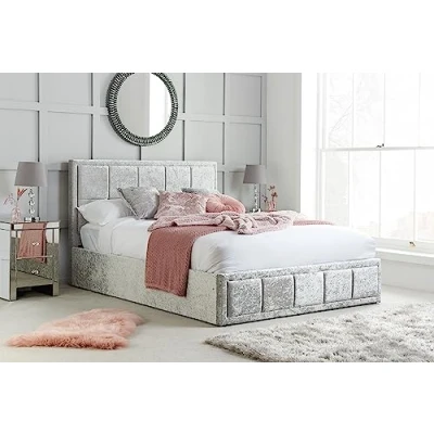 Birlea Hannover Ottoman Storage Bed Crushed Velvet Steel, Double