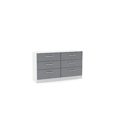 Birlea Lynx 6 Drawer Chest High Gloss, White and Grey