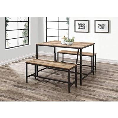 This table and bench set will make the perfect centrepiece to your dining room The beauty of a table and bench combination, is that you can squeeze plenty of people in, making it perfect for families as well as those who enjoy entertaining This versatile range is crafted from a metal frame with industrial effect detail and a wood-effect finish An ideal product for making a more traditional space look modern and rustic To keep this product in it's best condition, wipe carefully after use with a soft, dry cloth