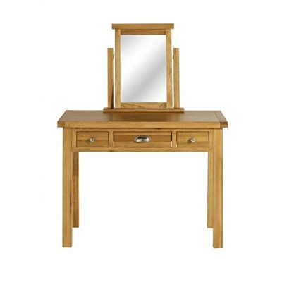 Simple, yet elegant dressing table constructed from solid oak Three spacious drawers to store your beauty essentials Ideal for organising your accessories Stool available to purchase which complements this dressing table Coordinating ideally with the Birlea Woburn bedroom collection