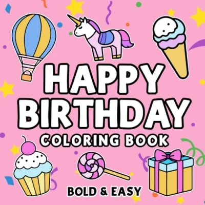 Birthday Bold and Easy Coloring Book: 30 Simple & Cute Designs for Both Adults Kids. Large Print. to Color. (Bold Books)
