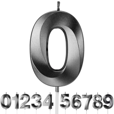 Birthday Candles Number Age Year for Cakes Happy 3D Designed Wedding Anniversary Party Cake Topper Decorations (Black, 0)