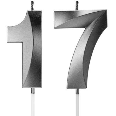 Birthday Candles Number Age Year for Cakes Happy 3D Designed Wedding Anniversary Party Cake Topper Decorations (Black, 17)