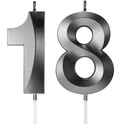 Birthday Candles Number Age Year for Cakes Happy 3D Designed Wedding Anniversary Party Cake Topper Decorations (Black, 18)