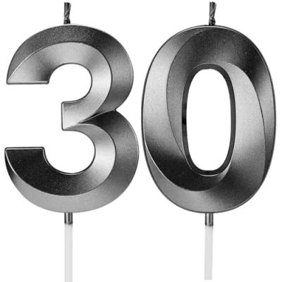 Birthday Candles Number Age Year for Cakes Happy 3D Designed Wedding Anniversary Party Cake Topper Decorations (Black, 30)