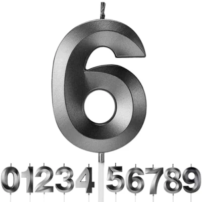 Birthday Candles Number Age Year for Cakes Happy 3D Designed Wedding Anniversary Party Cake Topper Decorations (Black, 6)