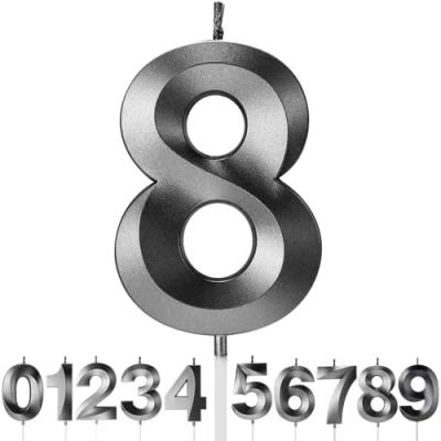 Birthday Candles Number Age Year for Cakes Happy 3D Designed Wedding Anniversary Party Cake Topper Decorations (Black, 8)
