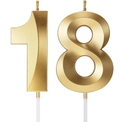 Birthday Candles Number Age Year for Cakes Happy 3D Designed Wedding Anniversary Party Cake Topper Decorations (Gold, 18)