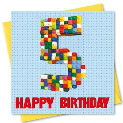 Birthday Card Age 5. Building Blocks Design. 150x150mm supplied with Envelope. Eco friendly. Message inside. Made in Britain.