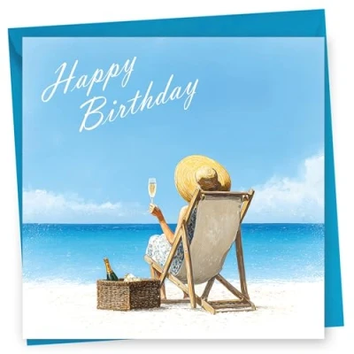 Birthday Card. Beach Woman Design. 150x150mm supplied with Envelope. Eco friendly. Message inside. Made in Britain.