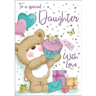 A High Quality Greeting Card and Envelope From Regal Publishing Designed and made in the UK - supporting British jobs Caption: Daughter Description: Bear holding cupcake Approximate size: 9 x 6 inches