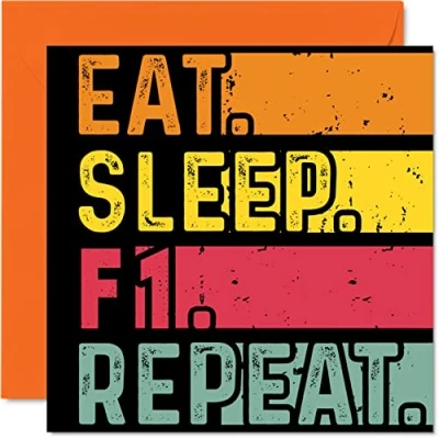 Birthday Card Funny for Her or Him Eat, Sleep, F1, Repeat Happy Cards Formula One Motorsport Lovers Gifts, 145mm x Greeting All Occasions Kids Adult
