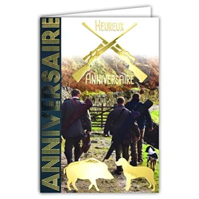 Birthday Card in Shiny Gold for Hunting Dog Game Pheasant Wild Boar Animals Nature Country Comes with Envelope Size 12 x 17.5 cm PEFC Paper Made France 65 1207