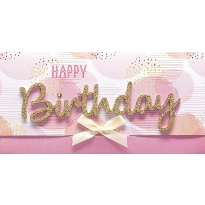 Birthday Card Lettering Surprise Happy Pink Circles 11 x 22 cm