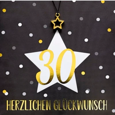 Birthday Card with Number 30 and Congratulations Blingbling Large Star 15 x cm