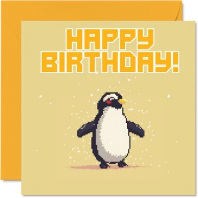 Birthday Cards for Men Women Pixel Art Penguin Happy Card Brother Sister Son Daughter Uncle Aunt Colleague Friend 145mm x Bday Greeting