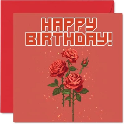 Birthday Cards for Men Women Pixel Art Roses Happy Card Brother Sister Son Daughter Uncle Aunt Colleague Friend 145mm x Bday Greeting