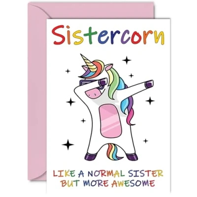 Birthday Cards for Sister Sistercorn Card from Brother or Step Sister, Happy Unicorn Gift, A5 Seasonal Sibling Funny Greeting Gifts