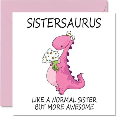 Birthday Cards for Sister Sistersaurus Card from Brother or Step Sister, Happy Dinosaur Gift, 145mm x Seasonal Sibling Funny Greeting Gifts