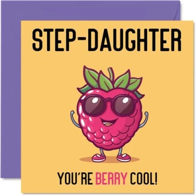 Birthday Cards for Step Daughter Berry Cool Funny Happy Card from Mum Dad, Gifts, 145mm x Joke Greeting Women Her