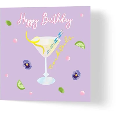 Birthday Cocktail Card Made from Recycled Materials Greeting Cards for Friends, Family, Loved Ones by UK Independent Artists Compostable Packaging