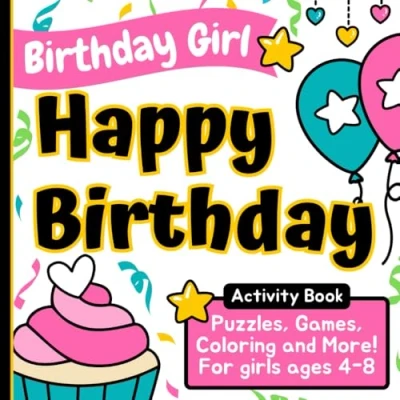 Birthday Girl: Happy Birthday: Activity Book: Puzzles, Games, Coloring, and More! Ages 4 8 (Happy Coloring Books for Kids)