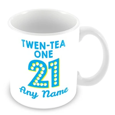 Birthday Mug (Age 21) with Name Personalised Mug/Cup Customised 21st Gift Tea Design Add Blue